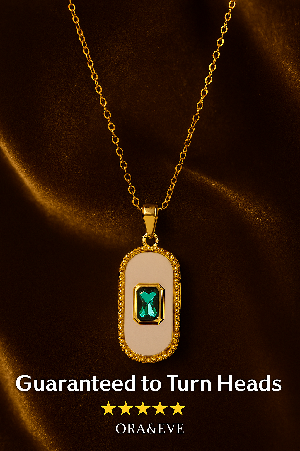 Emerald Pendant Necklace for Women โ 18K Gold Plated Oval Charm with White Enamel โ Waterproof & Tarnish-Resistant Dainty Jewelry Gift
