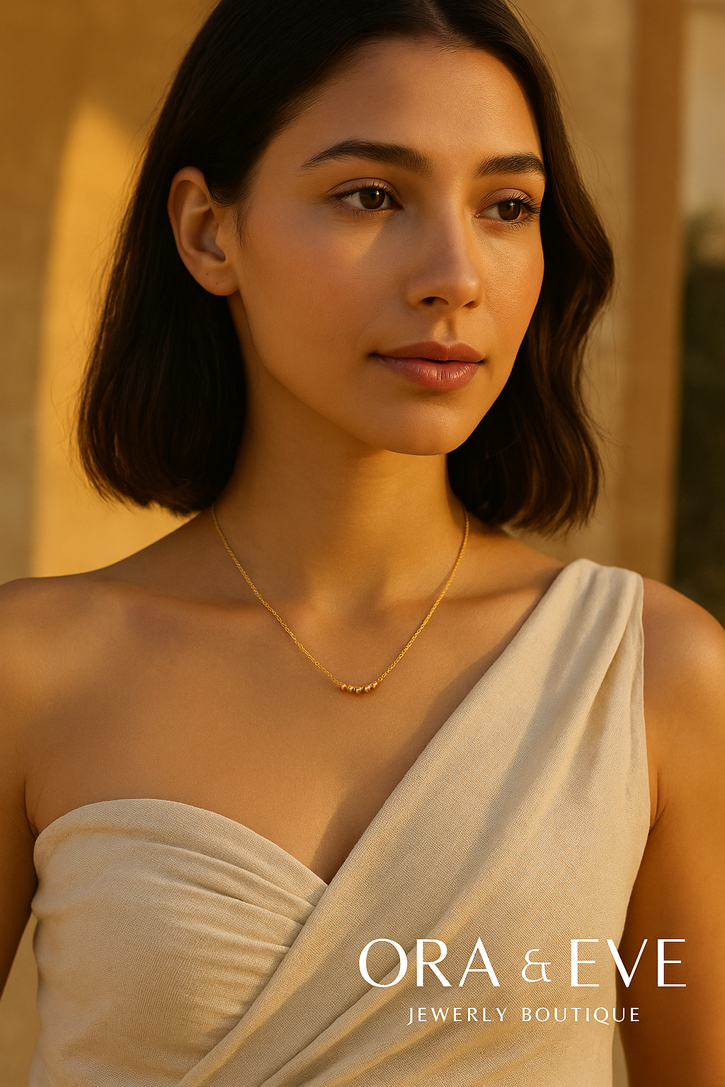 - Minimalist Gold Beaded Necklace – Features 6 polished gold beads on a delicate chain for a sleek, timeless look. 18K Gold Plated Stainless Steel – Crafted with durable, skin-safe materials that resist fading and breakage. Waterproof & Tarnish Free – Wear it in the shower, pool, or gym without worrying about damage or dullness. Perfect for Layering – Dainty enough to stack with other necklaces or wear solo for an elegant statement. Everyday Gift for Her – A thoughtful, stylish gift for birthdays, anniversaries, or self-love moments.