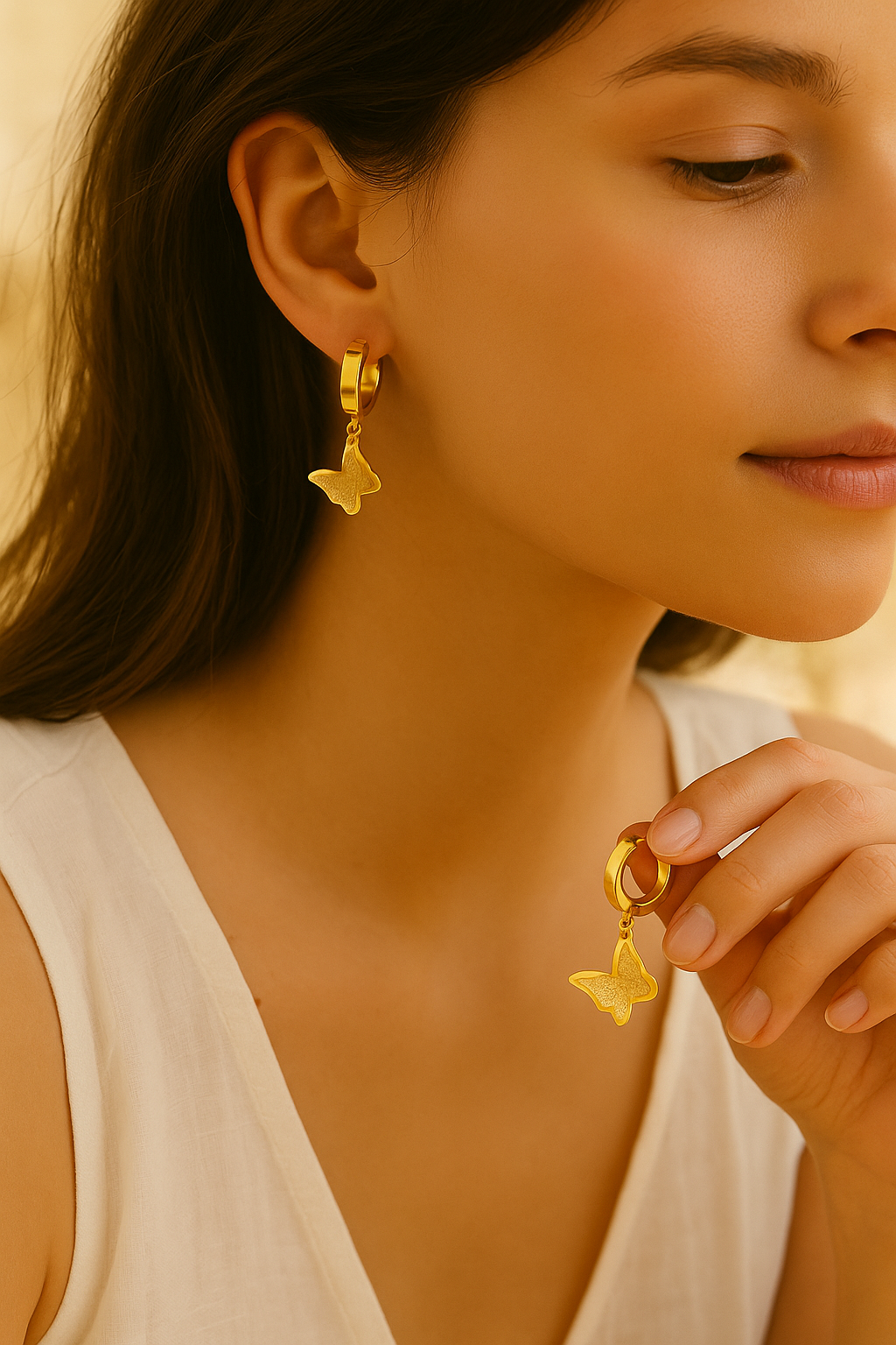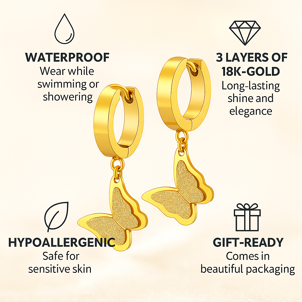 Butterfly Hoop Earrings for Women – 18K Gold Plated Dangle Drops, Lightweight & Waterproof Stainless Steel – Tarnish-Free Dainty Gift Jewelry by Ora & Eve